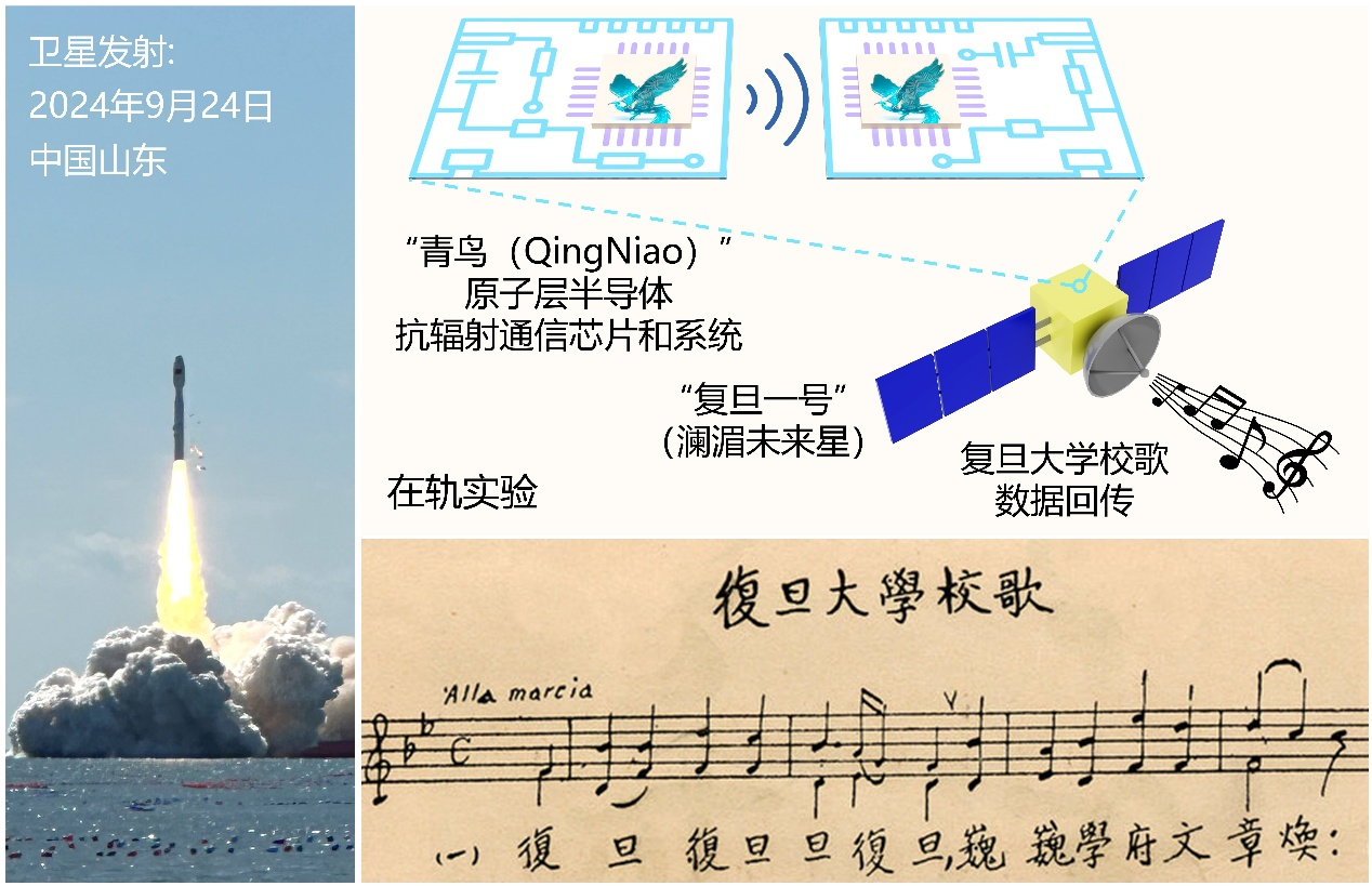 “我们想得更彻底一些,能不能从材料本身出发,寻找一种天然就不怕辐射的方案?”研究团队负责人回忆起最初的动机。他们回到物理机制源头,重新推导辐射粒子在半导体中的作用路径,最终发现:粒子引发的辐射损伤与材料厚度密切相关,越薄的材料,损伤累积越少。 “传统材料像一块木板,粒子击中后会留下许多‘伤痕’;而原子层半导体则像蝉翼,粒子能直接穿过,不容易造成破坏。”团队成员用这个形象的比喻解释“空间辐射免疫”的原理。这一发现让二维材料成为可能的答案。 然而,从理论走向工程的过程并不轻松。二维材料的设计与制造尚处早期阶段,缺乏成熟工具链和验证经验。从材料生长、晶体管制备、电路功能构建,到收发芯片联调,再到卫星载荷装配与环境适应性测试,每一步都需自研与验证。整个攻关周期长达4至5年,期间历经多次失败。 “我们现在是国内唯一完成这一设计体系的团队,甚至还开发出一套面向二维器件的自主设计工具。”在他看来,这条从实验室到星空的路径,不是捷径,而是一条扎实而漫长的上坡路。 271年的理论寿命与1/5的极致功耗,“青鸟”系统验证成功 2024年9月24日,“复旦一号(澜湄未来星)”卫星成功发射。依托“复旦一号(澜湄未来星)”卫星平台,在国际上首次实现“青鸟”系统的在轨验证,直接揭示了该系统在真实宇宙辐射环境下的长期工作稳定性与可靠性。 与许多“高冷”的技术任务不同,“青鸟”携带了一段特殊的“行李”,复旦大学校歌的手稿照片。这份承载百廿校园记忆的文稿被存入系统存储器中,在完成星内通信传输后,由卫星天线发回地面,再由地面站完成接收与解码。 但要实现这一听上去富有情感色彩的操作,背后是高难度的通信链路建立与多重风险控制。“我们最担心的是与卫星之间的第一段通信能否成功,如果失联,所有数据就无法回传。”团队负责人回忆。 幸运的是,数日后,地面站收到了一段令人激动的信号。复旦大学校歌信号完整、无误地从太空传回。“那一刻,我们激动得说不出话来,就像1970年人们第一次听到‘东方红一号’传回的《东方红》那样。”团队负责人说,“这不仅是技术上的成就感,更是一种精神传承。” “青鸟”系统的在轨表现也经受住了时间考验。在轨9个月后,其数据传输误码率仍低于10⁻⁸,展现出优异的稳定性。研究团队还对该系统在地球同步轨道(GEO)环境下的理论寿命进行了推算,结果显示其可在高辐射背景下运行超过271年——这一数据基于GEO年均辐射剂量与地面加速实验相结合得出。 此外,系统整体功耗仅为传统硅基系统的五分之一。“这两点结合起来,一方面能降低卫星服役过程中的能源消耗,另一方面也大幅减少了因设备失效而频繁发射补网卫星的必要性。”团队指出。在资源紧张的太空环境中,每一克重量、每一瓦能量都事关成败,“青鸟”系统以几近极限的技术指标,为航天通信提供了一种新的可能。 从卫星通信到太空算力,“青鸟”之后还会飞往何方? “青鸟”项目不仅是一次成功的科学实验,更标志着二维材料从基础研究走向航天工程应用的关键一步。它验证的不只是通信能力,更是整套系统工程的可行性:从晶圆级制备、芯片封装,到卫星搭载、链路调试,再到稳定数据收发,全链条已基本具备产业化潜力。 “我们目前的4英寸晶圆制备工艺,可以在现有硅基半导体生产线兼容投产。”团队表示,下一步除了将射频通信系统转化为产业化产品,还将推动器件设计平台、材料制备工艺等向更多企业开放。“我们已经建起了基础链条,接下来就是让它与应用场景结合。” 而这些场景,远不止于卫星通信。随着人工智能的算力需求快速攀升,研究团队正在探索将原子层半导体应用于太空计算系统,特别是图像处理、数据压缩等低功耗边缘计算任务。让“算力上天”成为可能。 在他们看来,上海发展这一技术路径具备天然优势:既有高校强劲的材料、器件、集成系统研究基础,也有相对成熟的本地产业生态与卫星平台支撑能力。“从材料、工艺到设计和系统,我们已经积累了完整闭环的能力。”团队负责人说。 从“青鸟”翱翔太空,到下一代星座组网与太空算力部署,二维电子系统的想象力正被拉伸。 论文链接:https://www.nature.com/articles/s41586-025-10027-9